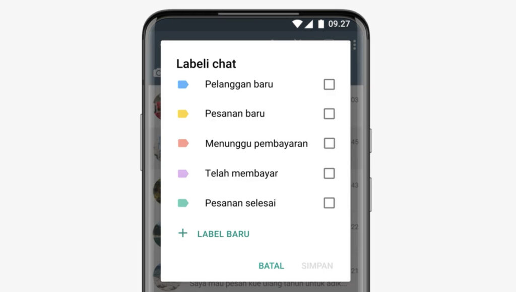 Fitur label memungkinkan kamu mengkategorikan pesan dari pelanggan berdasarkan status, seperti “Pelanggan Baru”, “Sedang Diproses”, atau “Penting”. Ini membantu menjaga keteraturan komunikasi dengan pelanggan, terutama ketika menangani banyak pesan sekaligus.